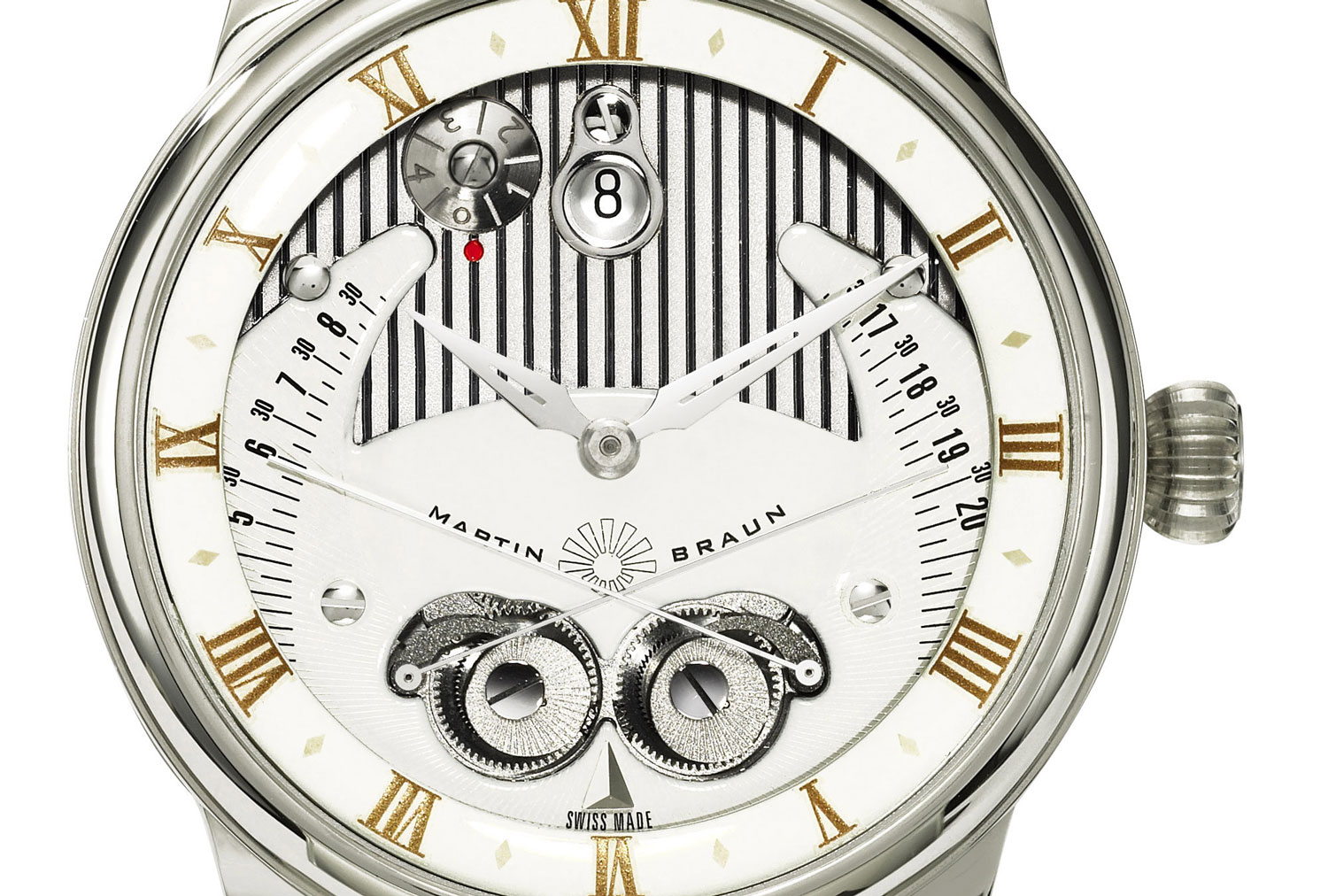 | ムーブメント: | 自動巻、マーティン・ブラウン・キャリバー MAB 88 インハウスムーブメント、28,800/h振動、パワーリザーブ約42時間 |